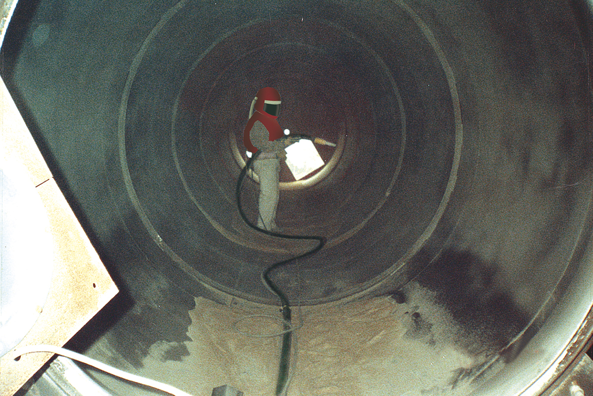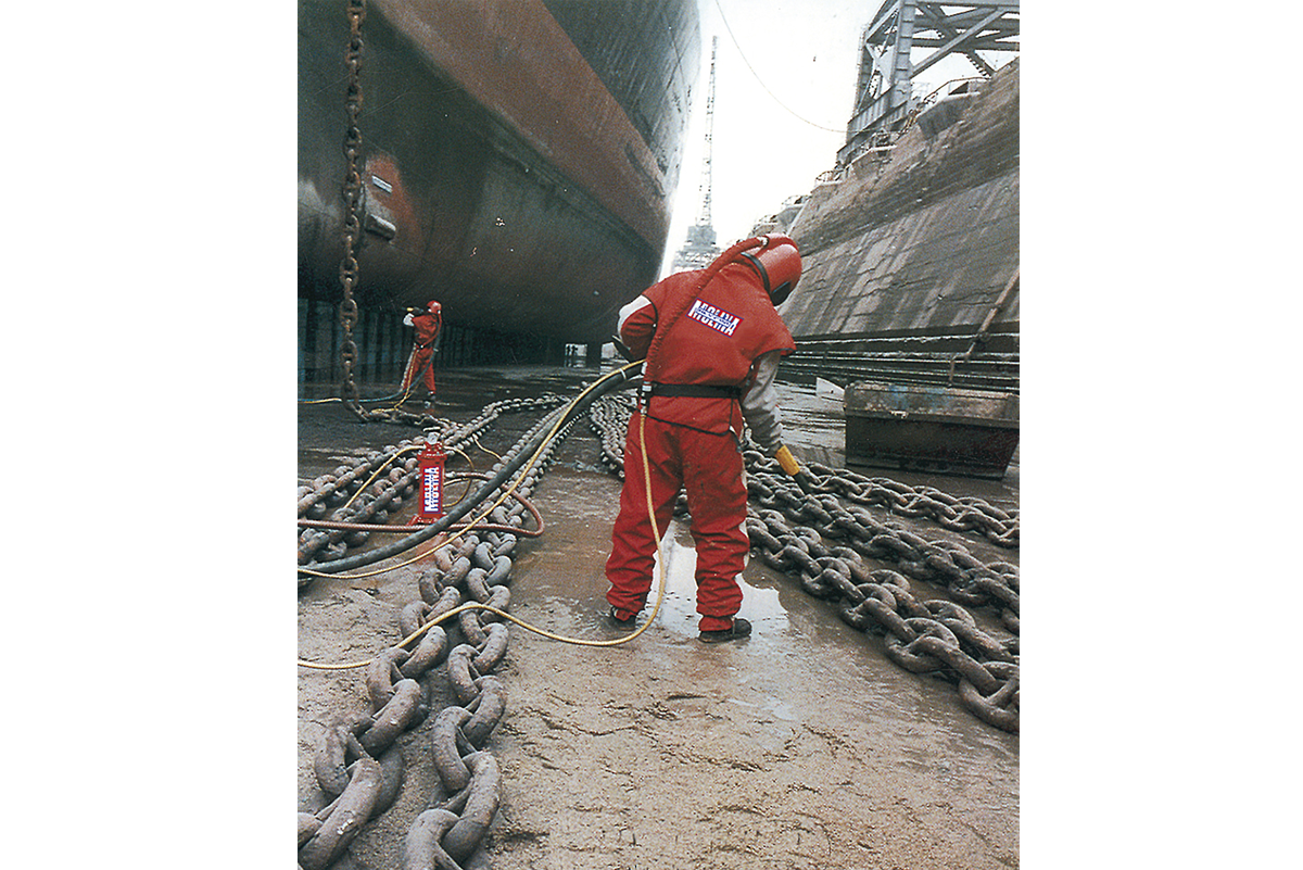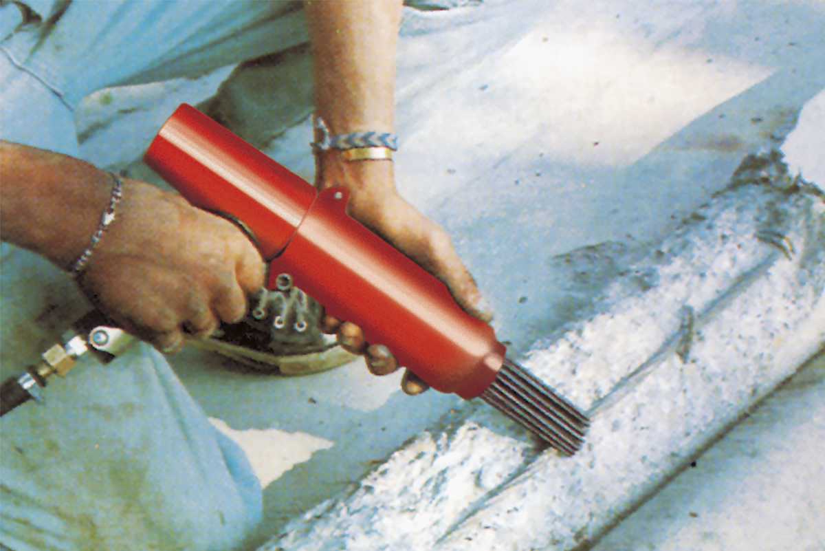 Limpieza con equipos de chorro de arena y limpieza con martillo de agujas.